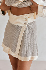 Wear it as a set or style it back with a tank, theΒ Chester Skirt is made from a natural cotton blend ribbed knit in grey, cream and white hues. It is a high waisted style featuring a wrap waistband with tie at side, square pocket detail and contrast ribbed trims. Get the set with the Chester Top! Designed exclusively by Sabo.