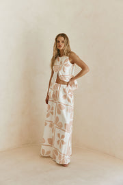 An elegant style for your next event, theΒ Riko Skirt is made from a natural cotton slub fabric with our exclusive Petal Patch print. It is a high waisted style featuring a thin elasticated waist with drawstring and a full a-line maxi skirt. Complete the look with the Riko Top and Tamia Heels. Designed exclusively by Sabo.