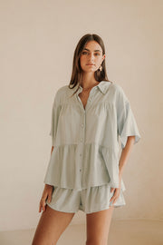 *THIS IS A SAMPLE* I am a one off Sabo sample of the Luna Top - Blue. I have a few yellow dots on my front middle. I cannot be returned, so I'm all yours to love and wear as your very own.